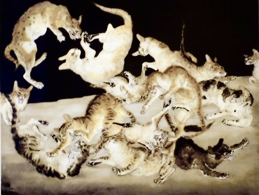 こちらもタイトルは『猫』だけど一体いくついるのやら。猫は「ひどく穏やかなところもあれば猛々しくなることもあり、二通りの性格に描けるのが面白いと思った」そう。確かにこちらの猫たちはどれも猛々しいw